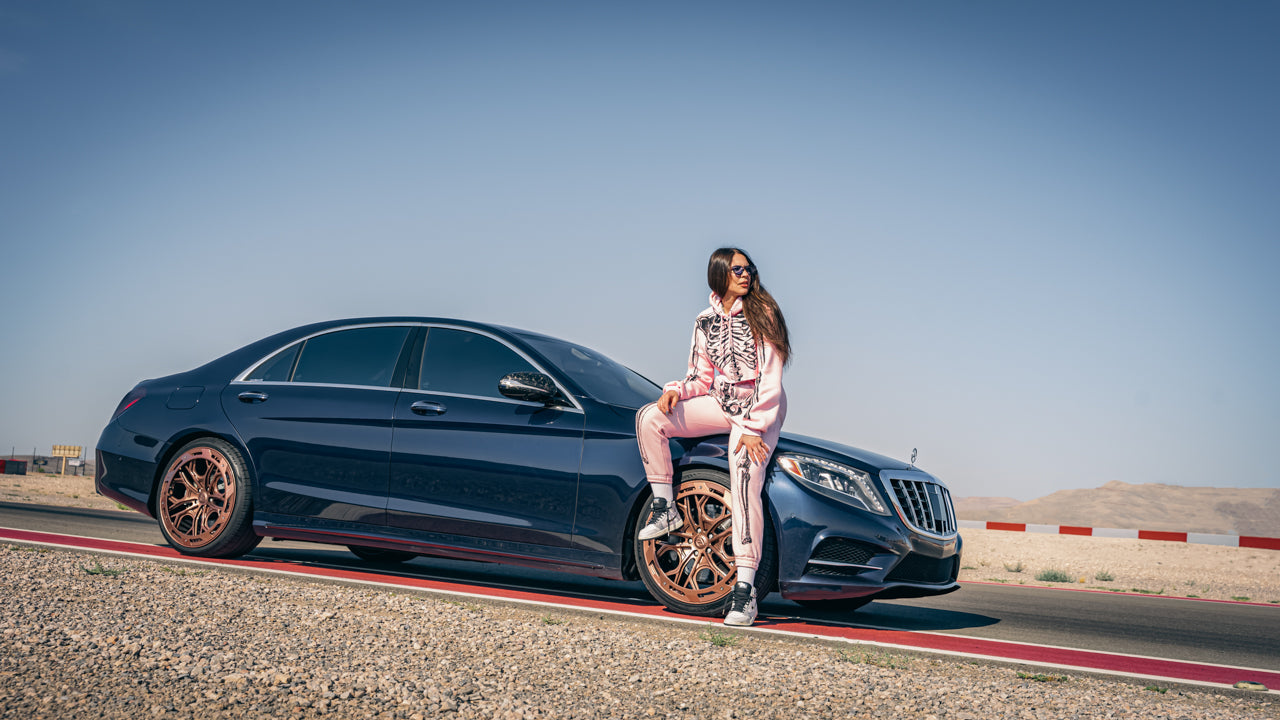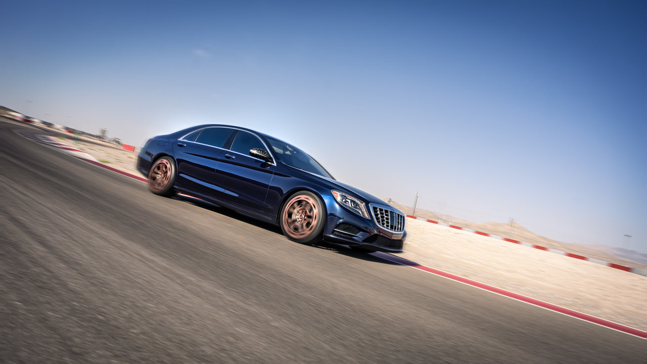 "Elevate your drive with the Mercedes Benz W222 S Class, now sporting elegant 21" Musart forged wheels in stunning bronze. These wheels perfectly complement the sleek, dark blue metallic exterior, transforming luxury into an art form."